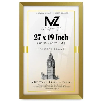 Modern Aesthetic : The sleek Gold Frame Molding offers a clean and contemporary look, adding sophistication to any setting. Versatile Design: Compatible with various decor styles, from contemporary to classic, our 27 x 19" frames seamlessly blend into any room. Whether it's a cozy living room or a professional office, these frames enhance the aesthetic appeal effortlessly. Flexible Mounting Options: Equipped with versatile hanging hardware, this 48.26 cm x 68.58 cm frame allows for both vertical and horizontal display. The included hooks and brackets ensure a secure and stable mount on any wall. Its lightweight design facilitates effortless installation and repositioning, providing the flexibility to create dynamic and adaptable displays. EFFORTLESS HANGING EXPERIENCE: Customers praise the simplicity of hanging this frame, equipped with strong hangers for a fast and trouble-free mounting on any wall. Effortless Wall Hanging: Installation is quick with included hanging hardware, allowing you to display your favorites in 27" x 19" and 685.8 x 482.6 mm with ease.