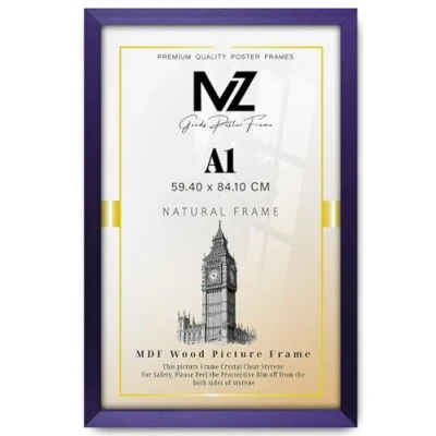 MZ Goods Classic and Elegant Rectangle Poster/Picture A1 Solid Eton Wood Finish Hanging Hooks 33 x 23 Inch Perfect for Portrait/Landscape Display [ Purple, Frame ]