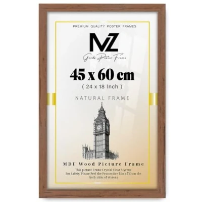 MZ GOODS Classic and Elegantly Rectangle Designed (45 x 60 CM) Picture Frame Safety Styrene MDF Wood Ideal for displaying Prints/Art/Posters/Gifts [ Walnut ]
