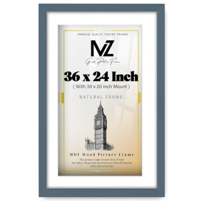 MZ GOODS Classic Rectangle Poster/Picture 36 x 24 Inch with Solid Eton Wood Finish (76.20 50.80 cm) White Mount (91.44 60.96 Perfect for Portrait/Landscape Display [ Dark Grey ]