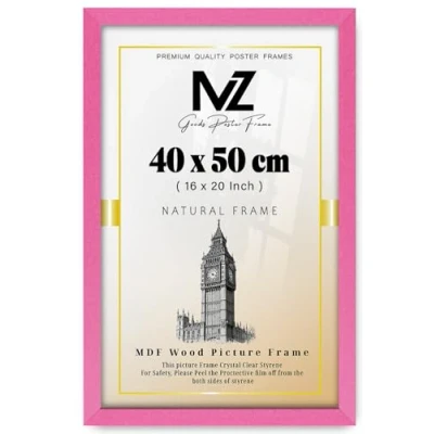 MZ GOODS Classy Large Rectangle (40 x 50 CM) Poster/Picture Featuring a Solid Eton Wood Finish for Portrait or Landscape Display 16 20 Inch [ Pink ]
