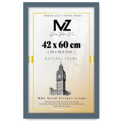 MZ GOODS Classy Large Rectangle (42 x 60 CM) Poster/Picture Solid Eton Wood Finish and Hanging Hooks /Birthday/Wedding/Gifting 24 16.5 Inch [ Dark Grey ]