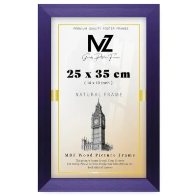 MZ GOODS Classy Photo Frame Rectangle MDF Picture (25 x 35 CM) with Clear Perspex Compatible any Interior Design [ Purple ]
