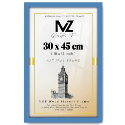MZ GOODS Gorgeous Flat Rectangle MDF Wood Wall Hanging (30 x 45 CM) Poster Certificate Frame with Backboard Styrene Included18 12 Inch for Gifts [ Blue ]