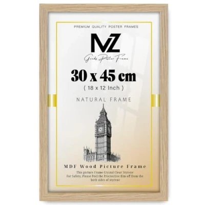 MZ GOODS Gorgeous Flat Rectangle MDF Wood Wall Hanging (30 x 45 CM) Poster Certificate Frame with Backboard Styrene Included18 12 Inch for Gifts [ Oak ]