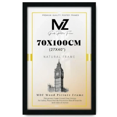 Stunning Design: Use a 70 x 100 picture frame for landscape portraits for posters and certificates Styrene glass and a sturdy backboard are features of this wall hanging. Perfect for large 27 x 39-inch (inches) frames for posters. Color: Black Materials: MZ Frame Goods frames are composed of MDF Solid Eton Wood and feature a polished Plexiglass front, allowing you to see your picture clearly and protecting your cards, memories, and photos.Frame size Moulding is 30mm wide 15 mm deep Best Gift: With its exquisite craftsmanship and elegant design, this chic and useful photo frame set is a great addition to any space and a perfect fit for displaying certificates, artwork, posters, portraits, paintings, artwork, medals, collectibles, postcards, and autographed photos in homes, offices, hotels, restaurants, and coffee shops. It's also a great idea to give these as holiday gifts for parents, friends, families, and graduates. The Provision of Care and Maintenance: Use a gentle, dry cloth to clean this Dust frame; stay away from abrasives and household cleaners. Glass can be cleaned by lightly misting a lint-free cloth with glass cleaner and wiping the surface clean. Quality Ensured: Each wall hanging is affixed into a sturdy tube, accompanied by exquisite and superior gift wrapping; this not only prepares the gift for presentation but also shields your artwork from potential bending or damage during transit. Purchase with assurance, click to add to basket, and enjoy! We want to make things right, so please contact us if you have any problems after delivery. We'll work to resolve any problems quickly.