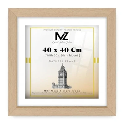 MZ GOODS Professional Square (40 x 40 Cm) with (30 30 White Mount MDF Wood Poster Frame 16 Inch Enhance Your Space Large Artwork/Photographs Decor [ Beech ]