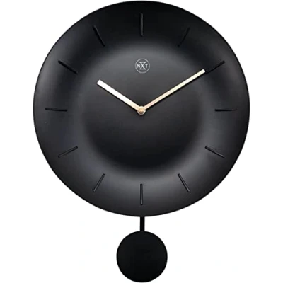 The nXt "Bowl" is a black wall clock (Ø 30 cm) made of plastic The bowl-shaped dial makes this clock unique together with the raised hour indication stripes The golden hands and sweeping pendulum give the clock a classy look This clock runs on 1x AA battery (not included).
