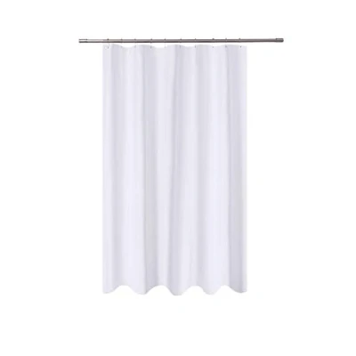 *HOTEL LUXURY QUALITY: Superior quality polyester shower liner serves long life use, applicable to hotel and home dcor. Closely knit thicker than ordinary fabric, a luxury and spa-like feel is delivered when showering or bathing *WATER-REPELLENT FABRIC is treated to let water bead stay on the surface, quick to repel and dry, 54" width x 78" length *DURABLE and LONG LASTING: Reinforced top header with 10 rustproof grommets prevents from tearing and promotes the shower curtain liner long lasting *EASY CARE: Machine washable for easy home care, keep your shower curtain fresh and clean. Rinse and dry quickly. 54 width by 78 length inches size available in stall, rv, camper and deco International products have separate terms, are sold from abroad and may differ from local products, including fit, age ratings, and language of product, labeling or instructions.