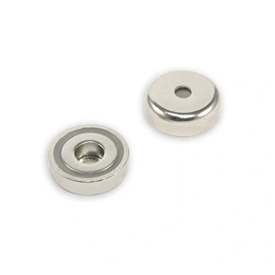 IDEAL FOR CREATIVE APPLICATIONS. Our neodymium magnets are commonly used in creative applications such as models and theatre design, furniture making, exhibitions, and packaging. USEFUL FOR MANUFACTURING & ENGINEERING. Neodymium magnets have many uses in engineering and manufacturing where maximum strength is required. RESISTANT TO CRACKING & CHIPPING. An added advantage of pot magnets is that they are resistant to chipping or cracking following constant impact with a steel surface. CORROSION-RESISTANT PREMIUM COATING. Coated with three layers of nickel, copper, and nickel to reduce corrosion and provide a smooth finish. CAN EASILY BE FIXED IN PLACE. Can be fixed in place with 5mm diameter countersunk screws. STRONG RARE EARTH MAGNET. Each magnet can support 20kg pull vertically from the magnetic face when in flush contact with a mild steel surface of equal thickness. SPECIFICATIONS. 25mm dia x 8mm thick x 5.5mm diameter counter bore hole for fixing.
