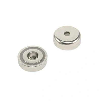 IDEAL FOR CREATIVE APPLICATIONS. Our neodymium magnets are commonly used in creative applications such as models and theatre design, furniture making, exhibitions, and packaging. USEFUL FOR MANUFACTURING & ENGINEERING. Neodymium magnets have many uses in engineering and manufacturing where maximum strength is required. RESISTANT TO CRACKING & CHIPPING. An added advantage of pot magnets is that they are resistant to chipping or cracking following constant impact with a steel surface. CORROSION-RESISTANT PREMIUM COATING. Coated with three layers of nickel, copper, and nickel to reduce corrosion and provide a smooth finish. CAN EASILY BE FIXED IN PLACE. Can be fixed in place with 5mm diameter countersunk screws. STRONG RARE EARTH MAGNET. Each magnet can support 20kg pull vertically from the magnetic face when in flush contact with a mild steel surface of equal thickness. SPECIFICATIONS. 25mm dia x 8mm thick x 5.5mm diameter counter bore hole for fixing.