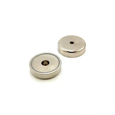 IDEAL FOR CREATIVE APPLICATIONS. Our neodymium magnets are commonly used in creative applications such as models and theatre design, furniture making, exhibitions, and packaging. USEFUL FOR MANUFACTURING & ENGINEERING. Neodymium magnets have many uses in engineering and manufacturing where maximum strength is required. RESISTANT TO CRACKING & CHIPPING. An added advantage of pot magnets is that they are resistant to chipping or cracking following constant impact with a steel surface. CORROSION-RESISTANT PREMIUM COATING. Coated with three layers of nickel, copper, and nickel to reduce corrosion and provide a smooth finish. CAN EASILY BE FIXED IN PLACE. Can be fixed in place with 8mm diameter countersunk screws. STRONG RARE EARTH MAGNET. Each magnet can support 139kg pull vertically from the magnetic face when in flush contact with a mild steel surface of equal thickness. SPECIFICATIONS. 60mm dia x 15mm thick x 8mm diameter counter bore hole for fixing.