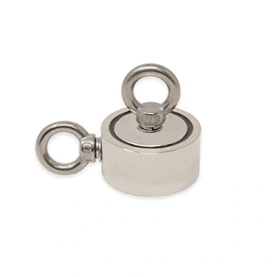 N42 Neodymium Pot Magnet with 2x M8 Eyebolts for Fishing, Recovery and Treasure Hunting 60mm dia x 22mm 120kg Pull