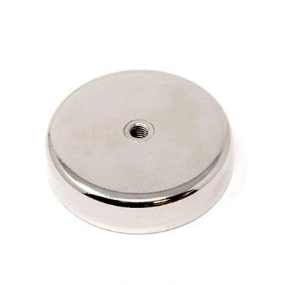 N42 Neodymium Pot Magnet with M10 Internal Thread for Holding, Hanging and Displaying Items 75mm dia 200kg Pull Pack of 1