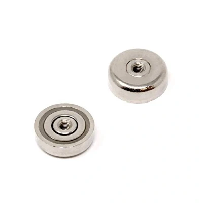 STRONG RARE ERATH MAGNET. Each magnet can support 10.5kg vertically from the magnetic face when in flush contact with a mild steel surface of equal thickness. RESISTANT TO CRACKING & CHIPPING. An advantage of pot magnets is that they are resistant to chipping or cracking following constant impact with a steel surface. CORROSION-RESISTANT PREMIUM COATING. Coated with three layers of nickel, copper, and nickel to reduce corrosion and provide a smooth finish. EXTERNAL THREAD. These Neodymium pot magnets feature an M5 metric internal thread that allows them to be screwed together with objects that have a compatible external thread. SPECIFICATIONS. 25mm diameter x with a M5 internal thread. EXPERT ADVICE. After your purchase, our team of experts is always available to provide you with technical advice and support with your application.