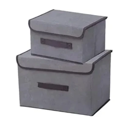 NA 2 Pack Foldable Fabric Storage Boxes with Lid (2 Sizes), Grey Baskets Handles for Toys, Books, Bedroom, Cupboard, Office, Living Room