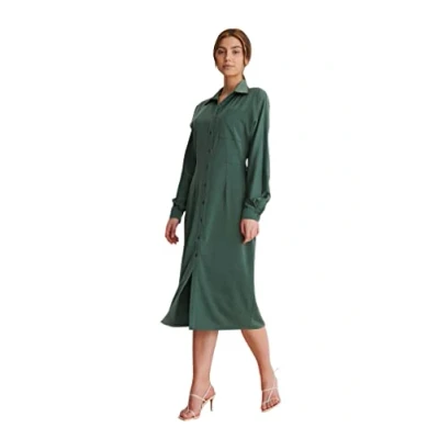 NA KD Women's Buttoned Midi Casual Dress, Green, 10 UK
