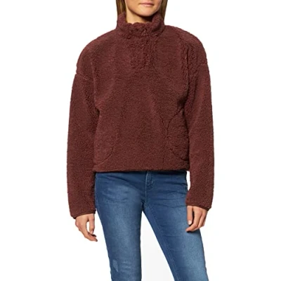 NA KD Women's High Neck Teddy Overshirt Sweater, Burgundy, 16 UK