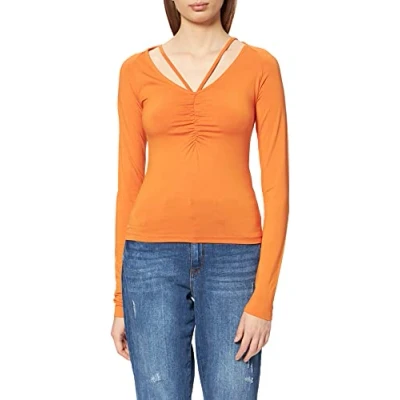 NA KD Women's Neck Detail Top Shirt, Orange, Large