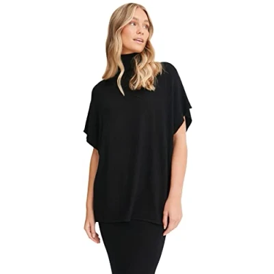 NA KD Women's Neck Knitted Top Polo Shirt, Black, S UK