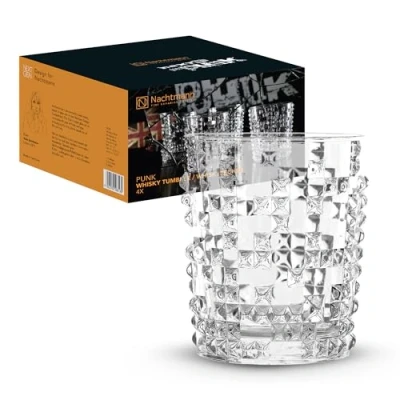 Edgy and versatile glass tumblers, Suitable for whisky and short cocktails as well as water, juice and soft drinks, Weighted design for stability, Perfect for everyday use or special occasions High-quality crystal glass with pyramid stud detailing for unique texture and diamond-like refraction, Perfectly formed and highly functional Designed to release the full flavour and aroma of spirits for an optimal sensory experience Designed in Germany: Dishwasher safe, No clouding or loss of brilliance after many wash cycles, Highly breakage resistant thanks to Platinum Glass production process Contents: Set of 4 Nachtmann whisky glasses, Material: Crystal, Volume: 348 ml, Height: 10.1 cm, Diameter: 8.4 cm, Total weight: 1.2 kg, Punk, 99503