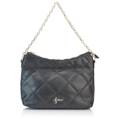 Feminine handbag Made from soft faux leather Diamond pattern Gold accents Spacious inner compartment