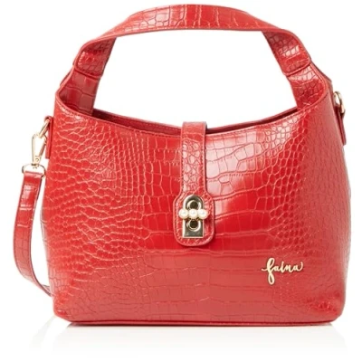 AmazonElegant shoulder bag Made of high quality imitation leather Partially crocodile embossed Screw cap with decorative beads Long adjustable shoulder strap