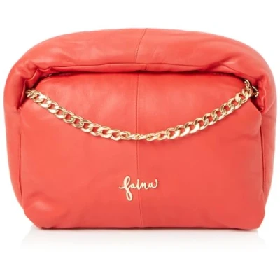 Padded leather case Short handle Elegant leather Gold hardware and logo Gold Link Chain