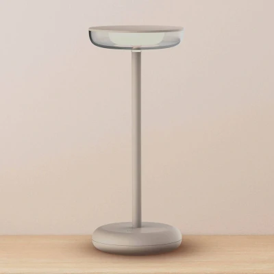 LED table lamp Pasi - mobile light source for indoors and outdoors Pasi is a round metal table lamp with a monochrome finish that harmonises with numerous modern furnishing concepts. Thanks to its splash-proof design, Pasi is the perfect choice not only for indoors, but also for patios and garden parties. The warm white LEDs are located on the flat head inside a satinised inner diffuser, with another clear cover on the outside. Light is emitted from all sides and downwards. Thanks to the rechargeable battery, no power connection is required during operation. The brightness can be adjusted using the touch dimmer on the base - IP code: IP44 - Charging time: 5 h - Lighting time per charge: 4 h - Charging cable (100 cm) included; charging only in dry environments