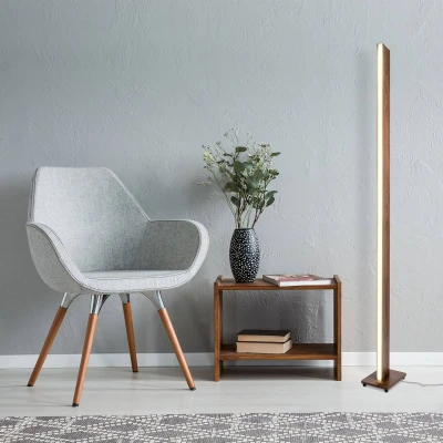 Näve Madera LED floor lamp, wooden look, dimmable