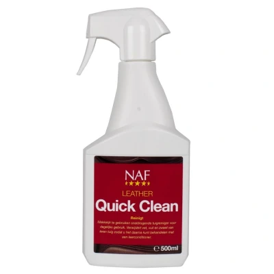 HypostoreNAF Leather Quick Cleans. Easy to use quick drying everyday cleaner to swiftly lift and remove grease, sweat and dirt from leather tack, leaving it clean and ready to be conditioned.