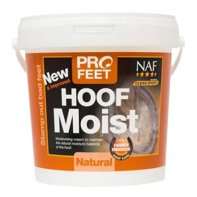 NAF Profeet Hoof Moist is an entirely natural product with a dual action, Hoof Moist helps improves hoof condition. The smooth gel can be easily applied with either a hoof brush, soft cloth or by hand. Oil and grease free, Hoof Moist has been especially formulated to sustain the moisture content of the hoof and allow natural fluctuation of moisture levels. The ingredients used to make Hoof Moist are of human cosmetic grade and the manufacturing process used in it’s production results in a smooth gel consistency to allow for even application. Hoof Moist also contains Eucalyptus, which gives it a natural antiseptic quality. Hoof Moist is particularly useful throughout the dry summer months and also for the horse who has to spend prolonged periods on dry bedding, which can draw moisture out from the hoof.
