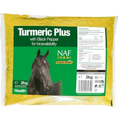 Natural Anti-Inflammatory Support - Turmeric is known for its powerful antioxidant and anti-inflammatory properties - ideal for joints, muscles, skin and digestion. With Linseed Oil & Black Pepper for Absorption - Formulated with linseed oil to support coat health and black pepper to enhance the absorption of curcumin (the active compound in turmeric). Promotes Mobility & Comfort - Supports natural recovery and flexibility - ideal for older horses, those in work or needing general support for comfort and wellbeing. Highly Palatable & Easy to Feed - Fine powder mixes easily with daily feed - suitable for long-term use in horses and ponies of all ages. 2kg Tub - Excellent Value for Ongoing Support - Large tub provides great value and up to 66 days of support depending on feeding rate.
