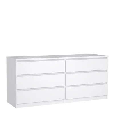 Naia Wide Chest of 6 Drawers (3+3) in White High Gloss