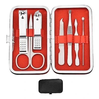 [Manicure Set Included] You will receive 7 pieces of manicure tools(large nail clipper, small oblique nail clipper, eyebrow scissors, eyebrow tweezer, ear pick, nail file, nail cleaner) , including multifunctional hand care, facial care and foot care tools, can satisfy your daily use. [Premium Stainless Steel Material] Our manicure set is made of stainless steel mainly, strong and reliable, can be kept for a long time, not easy to deform or fade. Nail clipper blade edge has been sharpened twice. Nail clipper handle with anti-slip ripple texture lever, lets you distant from bending and slipping problem, delivering a more comfortable user experience. [Portable&Wide Applications] The size of manicure set is about 11*7*2.5cm and weight is 0.15kg, can be easily opened by pressing a button, portable to take, so you can put the nail tools into the it, can help you to save much space fade, cut nails easily and safely, so you can use it confidently. Manicure kit can be applied for manicure, pedicure, exfoliation and eyebrow trimming, helping you to cut and clean fingernails, toenails and so on, so you can take it with you when you go out or travel. [Thoughtful Present] Our manicure kit with a stylish and elegant leather case and the nail clipper set is exquisite, it can help you to show your thoughtfulness and love to others. It is practical and popular with family and friends. So you can send it as present to men, boys, women, families, relatives and friends at Christmas, Thanksgiving Day, Valentine's Day, Birthday, Festival and Anniversary or anytime.