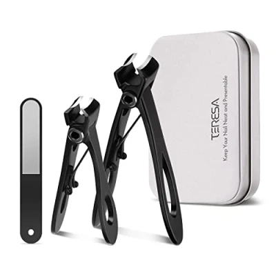 LARGE OPENING FOR THICK NAILS - Compared to normal fingernail clippers, this nail clippers can be opened large much wider, up to 19mm (approx. 180 degrees). You can use it for really thick nails, toenails, ingrown toenails Nail clean cutting - Unlike conventional aligned blades, this nail clippers process the blades using a 0.02 mm edge offset technology that ensures that the blades are sharper and more durable. The cutting edge will not crack or split nails leaving a smooth, clean cut every time EASY TO USE - Made of durable stainless steel, long handle and wide lever for extra strength in nail trimmer. Make nail cutting easy and effortless even in weaker hands Convenient carry bag - Packed in a metal box to keep all nail clippers in perfect order and not to get lost. This nail clippers set can be carried discreetly in your bag as soon as a cutest nail or broken nail occurs Gift birthday woman man - A nail clipper is the most important tool to keep hands and feet clean and tidy, and is a great gift that you will actually use