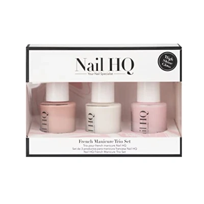 Nail HQ French Manicure Set Base Colour, Tip Colour & Top Coat Vegan Cruelty Free Polish Kit High Gloss, Long Lasting Finish 3 x 10ml