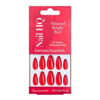 Nail HQ Press On Nails Almond Bright Red Nails, 24 Durable Glossy Finish False for Salon Quality Manicure at Home