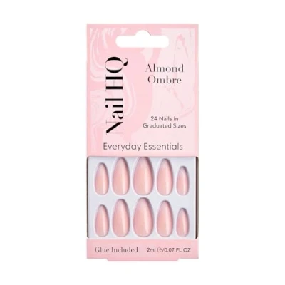Nail HQ Press On Nails Almond Ombre French Nails, 24 Durable Glossy Finish False for Salon Quality Manicure at Home
