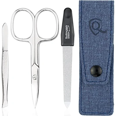 Nail Scissors and Tweezer Set with File 3 Piece Collection Ideal for Him or Her, at Home as Small Travel Grooming Essentials, jeans