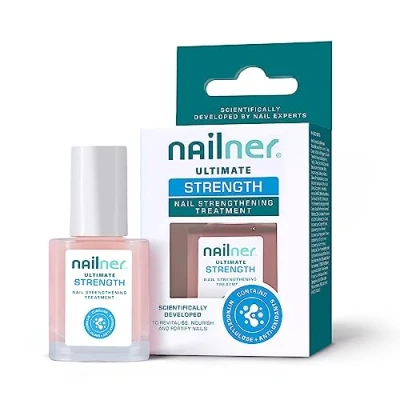 Nailner Ultimate Nail Strengthening Treatment Polish Strengthener for Damaged Nails Scientifically Developed to Revitalise, Nourish & Fortify Glossy Light Rose Varnish 10ml