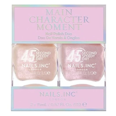 Nails.INC 45 Second Speedy Gloss Main Character Moment Nail Polish Duo, Quick Drying, Fast & Rapid Dry, High Shine, Glitter Iridescent, Air Dry Regular Polish, Spring/Summer Shades, 2 Piece Set