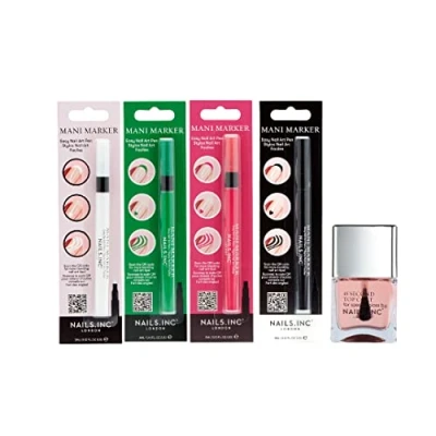 Create Salon-Worthy Nail Art at Home – Save your money! Worth £43. The Nails Inc Mani Makers allows you to design intricate details, French tips, and bold patterns with ease. Manicure markers come in 4 shades: Bright White, Kale Green, Bubblegum Pink, and Mascara Black Fine-Tip Precision for Easy Nail Designs – Featuring a chisel-tip applicator, these nail markers provide smooth, controlled strokes, perfect for detailed nail art, line work, and geometric designs Quick-Dry & Smudge-Proof Formula – Designed to dry instantly upon application, these long-lasting nail art pens prevent smudging, so your designs stay flawless. Plus lock your design in with our fast drying top coat Strengthening Retinol Formula - Infused with strengthening retinol, this top coat is ideal for promoting healthier, stronger nails while enhancing the longevity of your polish Gift Giving Fun - A thoughtful gift for birthdays, stocking stuffer for Christmas, Valentines, Easter basket, and bachelorette parties. Our makeup sets are the perfect gift for women or girls for spa days and so much more