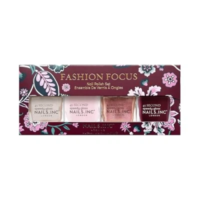 Nails.INC Fashion Focus Nail Polish 4 Piece Set, Trend Inspired Shades, Swatched from the Catwalk, Longwear Rapid Dry Formulation, Cruelty Free, Vegan, 21 Free