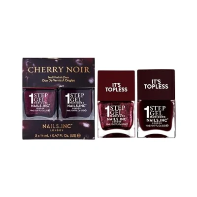 Nails Inc It's Topless Gel Like Cherry Noir Nail Polish Duo, 4 in 1 Base Coat, Treatment, Colour & Top Long Lasting, Strong, Chip Free, Glossy Salon Quality Manicure, Air Dry, 2 Piece Set