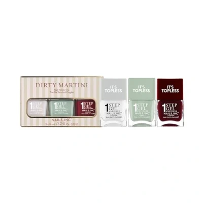 Nails Inc It's Topless Gel Like Dirty Martini Nail Polish Trio, 4 in 1 Base Coat, Treatment, Colour & Top Long Lasting, Strong, Chip Free, Glossy Salon Quality Manicure, Air Dry, 3 Piece Set