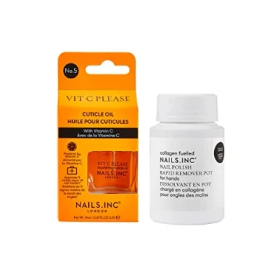 2-Piece Nail Treatment Set for Hydrated & Healthy Nails – This nail care duo includes a Vitamin C-infused cuticle oil and a collagen-fuelled nail polish remover pot to deeply nourish, strengthen, and maintain nail health. Vitamin C Cuticle Oil for Intense Hydration – The Vit C Please cuticle oil is enriched with Vitamin C to moisturise, soften, and condition dry, brittle nails and cuticles, preventing peeling and breakage. Collagen Nail Polish Remover Pot for Gentle Cleansing – The collagen-fuelled remover pot effectively removes nail polish while nourishing nails, leaving them hydrated and healthier with every use. Vegan, Cruelty-Free & 21-Free Formula – Made without harsh chemicals, this non-toxic nail treatment set is 100% vegan & cruelty-free, perfect for clean beauty enthusiasts. Perfect for Daily Nail Care & Gifting – Whether you’re repairing damaged nails or maintaining a salon-fresh manicure, this nail treatment duo is ideal for at-home nail care, self-care gifts, and beauty lovers.