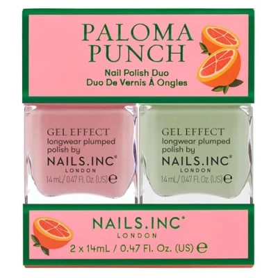 Nails Inc Paloma Punch Nail Polish Duo, Long Lasting, Easy Manicure Look, Cruelty Free, Vegan, 21 Free Formula, Dusky Pink, Soft Green, Plumping Effect, Gel 2 Piece Set