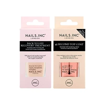 Back To Life is a bestselling nail strengthening treatment Base coat can be used as a base coat or intense treatment Vegan, cruelty free Top coat is enriched with retinol and touch dry in 45 seconds Nails.INC manicure essentials