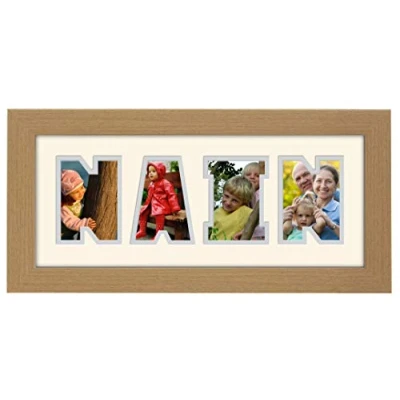 Nain Photo Frame Word Light Oak Wood Finish Birthday Welsh Nan Picture Gift Present